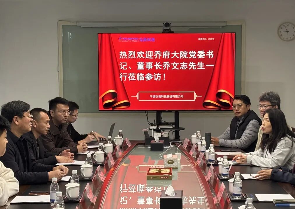 会后,乔府大院代表团一行参观了弘讯科技公司园区,详细了解公司在工业互联网、智能制造等领域的最新技术成果及在农业场景的创新应用。