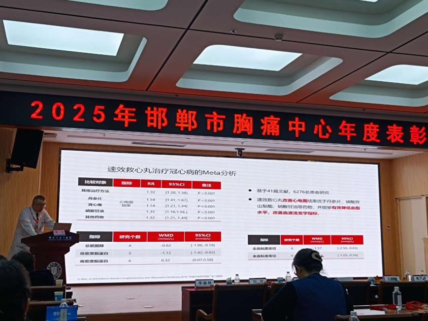 会上,天津市胸科医院李春洁教授作《中西医结合胸痛与复苏体系建设》的报告,指出其牵头制定的《全国中医院胸痛中心建设标准》已在全国推广。他强调,速效救心丸在急性冠脉综合征(ACS)患者中表现出优于硝酸甘油的临床疗效,尤其在改善心绞痛症状方面效果显著,且安全性更高。团队还开展了速效救心丸在极端天气条件下对慢性冠脉综合征(CCS)患者的早期干预研究,构建了家庭中医药救治与院前中西医协同救治相结合的全链条新模式。