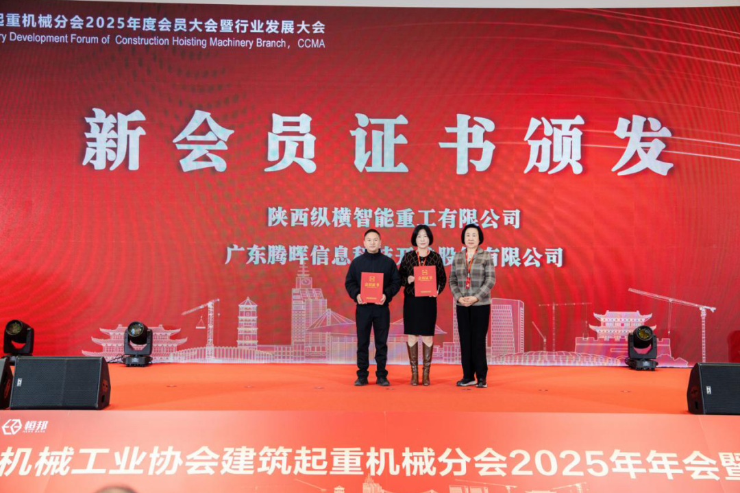 2025年,陕西纵横智能重工有限公司、广东腾晖信息科技开发股份有限公司两个公司通过建筑起重机械分会申请加入协会,获批同意入会。
