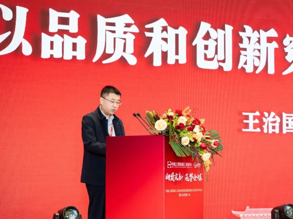 会上开展了“向质求新·筑梦全球”主题演讲,徐工集团徐州建机工程机械有限公司副总经理王治国、抚顺永茂建筑机械有限公司总经理助理李子陆、马尼托瓦克起重设备(中国)有限公司经理吕卫东、山西省工程机械有限公司党委书记、董事长张作鹏等嘉宾先后上台分享,从不同维度为与会代表呈现了“向质求新”的实践路径,让大会充满思想火花。