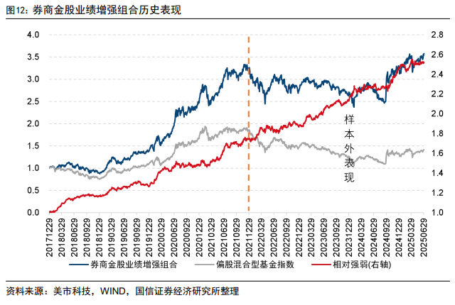在2018.1.2-2025.6.30区间内,券商金股业绩增强组合考虑仓位及交易费用的影响后,组合年化收益为19.34%,相对偏股混合型基金指数年化超额14.38%,在2018年-2025年期间,组合每年的业绩排名都排在主动股基前30%的水平。