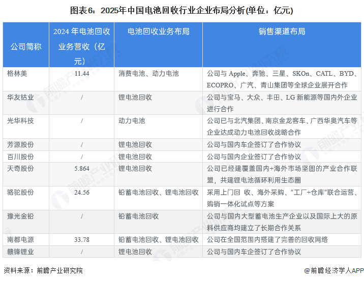 1、中国电池回收行业竞争梯队