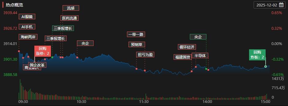板块题材上,医药商业、福建、旅游及酒店、AI手机、煤炭开采加工、房地产、零售板块涨幅居前;贵金属、电池材料、影视院线、教育、游戏、CRO概念股跌幅居前。