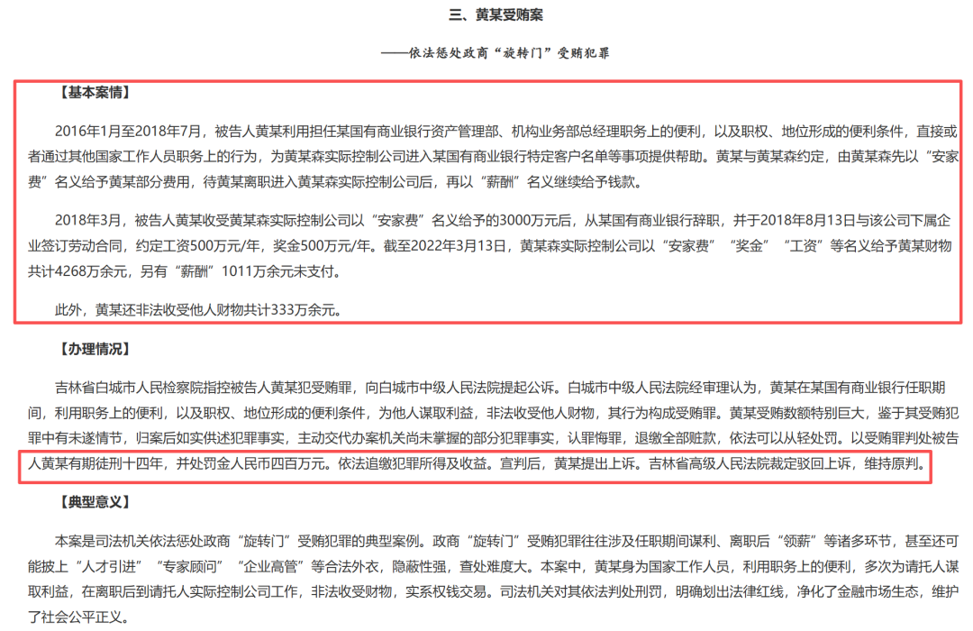 先说这几天最高人民检察院在11月28日发布的《依法惩治金融领域职务犯罪典型案例》中提到的黄曦受贿案。