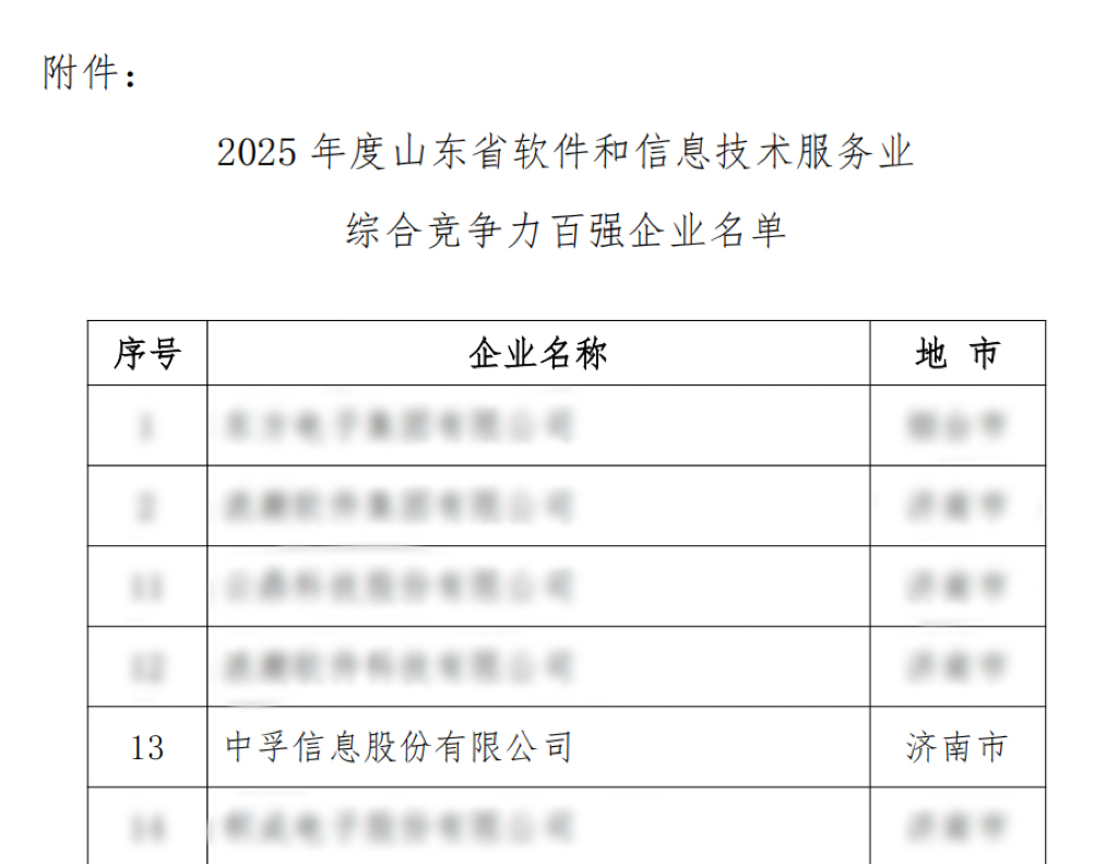 近日,山东省软件行业协会公布“2025年度山东省软件和信息技术服务业综合竞争力百强企业”名单,中孚信息凭借强劲的软件研发实力、丰硕的科技创新成果及扎实的市场开拓成效,连续4年荣登榜单,充分彰显了其在山东省软件与信息技术服务领域的领军地位。