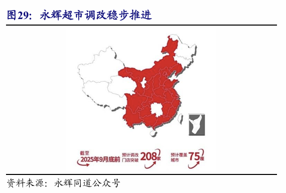 永辉超市调改取得阶段性进展,稳步向品质零售转型。永辉超市调改战略已进入系统性深化阶段,标杆门店示范效应已同步显现,截至 2025 年 9月底,公司共调改 222家门店,聚焦核心调改门店后, 2025年前三季度累计同店销售额已恢复正增长。