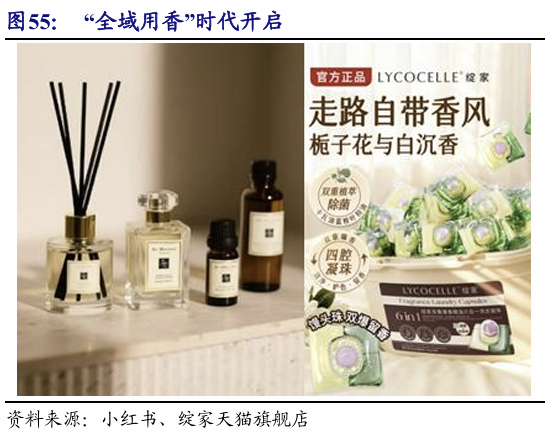 产品多元化:超越香水瓶的边界,打开“全域用香”时代。气味正作为一种基础元素,融入现代生活方式的各个层面。而家居香氛是空间情绪价值的物化,帝斯曼-芬美意2024年对1499名消费者的调研数据显示,63%的消费者已在日常生活中使用家用香氛产品。同时,带有香氛属性的个护产品、洗衣凝珠、衣物留香珠乃至口罩香氛贴等创新产品不断推出,也标志着嗅觉经济已深度融入日常生活中。高频、低门槛使用场景,成为品牌建立用户心智的关键触点,加速推动香氛品类向日常化、多场景化方向发展。
