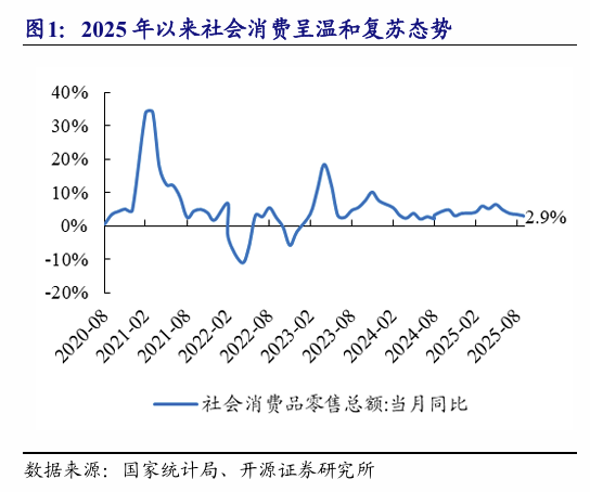 1.1、零售数据:2025年社会消费稳步复苏,可选品类表现更佳