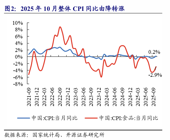经济发展、消费场景恢复背景下,2025年社会消费稳步复苏。2025年1-10月社零412169亿元(同比+4.3%,下同),其中10月社零总额为46291亿元(+2.9%)。呈现弱复苏态势。分季度看,2025Q1/Q2/Q3社零增速分别为+4.6%/+5.4%/+3.4%,社会消费整体呈现稳健复苏趋势。价格因子方面,2025年10月整体/食品类CPI同比增速分别为+0.2%/-2.9%,整体CPI同比由降转涨,消费领域的价格动能正在累积,随着经济预期有所改善,关注后续消费潜能释放。