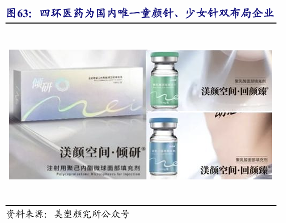 注射针剂获批上市加速,头部企业持续完善产品矩阵。(1)2025年7月,锦波生物发布全球首个重组III型人源化胶原蛋白凝胶HiveCOL,产品具备“即刻支撑+持续新生”的协同效应,能够更好融入人体实现组织新生,公司完成冻干、溶液、凝胶全剂型布局。 (2)2025年7月,四环医药旗下渼颜空间上市新品童颜针“斯弗妍”、“回颜臻”(双规格)、PCL少女针“倾研”,覆盖肤质提升、轮廓塑形、容量补充全维度需求,成为国内唯一同时布局童颜针、少女针的企业。(3)2025年6月,华熙生物“润百颜·玻玻”上市,成为国内首个明确获批“面部肤质改善适应症”的三类械水光产品。