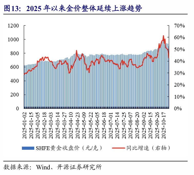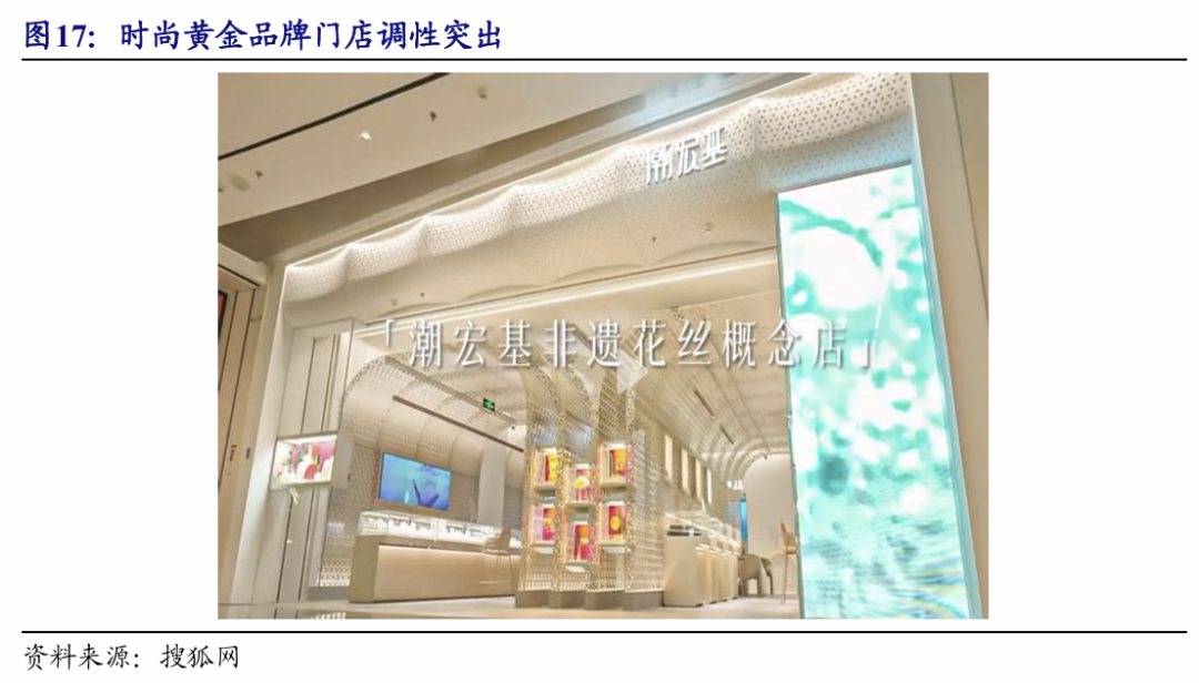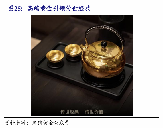看好高端中式黄金和年轻时尚黄金两大差异化赛道。高端黄金在经济下行和消费趋向保守化背景下,凭借其深厚文化底蕴和保值属性成为“中式老钱”最佳载具,同时金价上涨进一步强化了黄金的保值优势。2025年以来,以老铺黄金为代表的高端黄金品牌,通过高端商圈布局、产品结构升级和社交溢价实现品牌破圈、人群增长。时尚黄金则在产品差异化设计、社交媒体运营方面突出优势,一方面通过深耕小红书等年轻社交媒体,深度洞察年轻消费者偏好并反馈至产品研发端,另一方面凭借设计层面年轻化表达和硬金工艺支撑,实现外观造型上的轻巧立体精致和对年轻文化的深度融入,愈发受到年轻消费者和加盟商群体青睐。