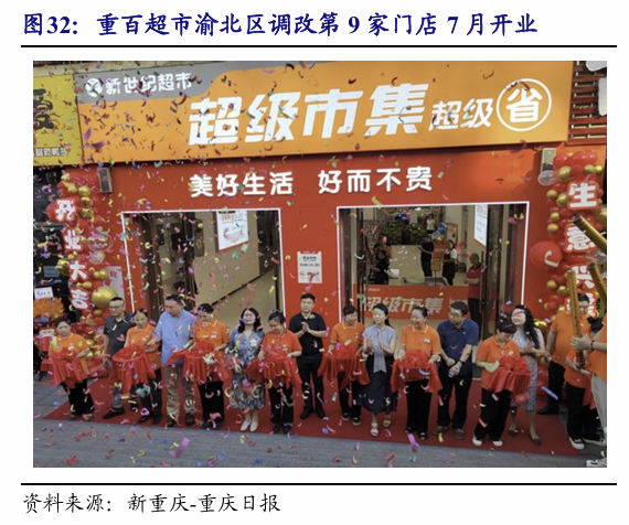 百货行业关注国企改革,把握板块价值重估机遇。百货国改对提升效率、激发管理积极性及增强市场认知具有重要作用,业态调改则通过对空间场景、业态结构、品类布局等革新,将传统百货转型为品质生活体验场。重庆百货四大业态(百货/超市/电器/汽贸)协同调改:百货围绕“商品、场景和效率”变革,加速品牌引新汰旧,实现黄金品牌宝元通和女装品牌木木一两大自营品牌落地;超市预计2025年重百新世纪至少调改38家门店,社区拓展“生鲜+折扣”超级市集、商圈布局精致生活馆,成果显著。