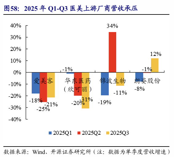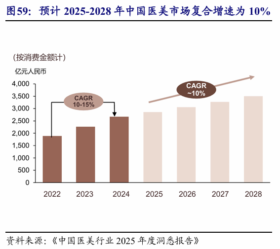 2025年以来医美整体承压,长期看“渗透率+国产化率+合规化程度”多维提升逻辑未变。受社会消费环境影响,2025年医美行业整体增速放缓,竞争趋于激烈,2025年前三季度上游厂商(爱美客、华东医药)营收承压、下游机构(朗姿股份)营收边际改善。 据《中国医美行业2025年度洞悉报告》,预计2025-2028年将保持约10%的年复合增长率。