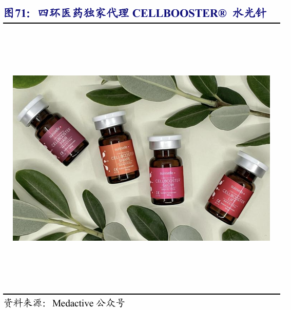 海外合作从独家代理到深度持股协同,四环医药升级海外战略合作深化全球化布局。2025年9月,四环医药宣布完成对瑞士医美企业 Suisselle SA 的战略入股,正式切入欧洲高端医美市场,标志着公司完成欧美两大核心区域布局,实现由产品代理向资本绑定与深度协同的升级。国内市场端,公司将永久享有 CELLBOOSTER® 水光针系列的独家代理权益,并持续引入欧洲创新产品,完善轻医美产品矩阵;国际市场端,公司可依托 Suisselle 在欧洲的成熟平台,加速旗下渼颜空间等自研医美产品在欧洲及全球市场的推广。