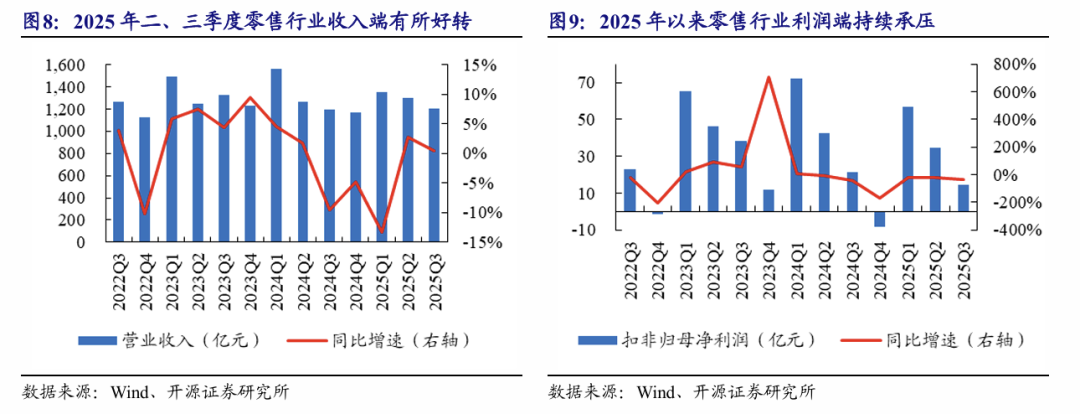 1.2、零售企业经营业绩:2025年以来收入端有所好转,利润端承压明显