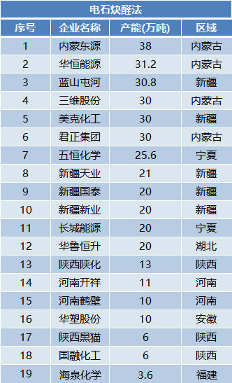 主流的炔醛法是德国Farben公司的W.Reppe等人于20世纪30年开发成功的。国内大多先用电石或天然气制乙炔,再和甲醛反应。用连续流化床反应器,分两阶段:先在高温高压下催化合成1,4-丁炔二醇,再加氢得BDO。国内企业里,蓝山屯河、新疆美克、内蒙东源、君正集团、华恒能源、三维股份、陕西陕化、五恒化学等靠当地电石资源,都建起了BDO装置;四川永盈、延长石油、曙光绿华改良天然气路线,能产高纯度BDO。