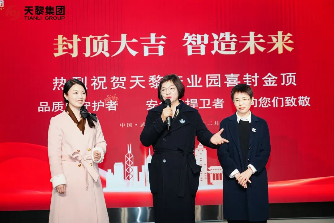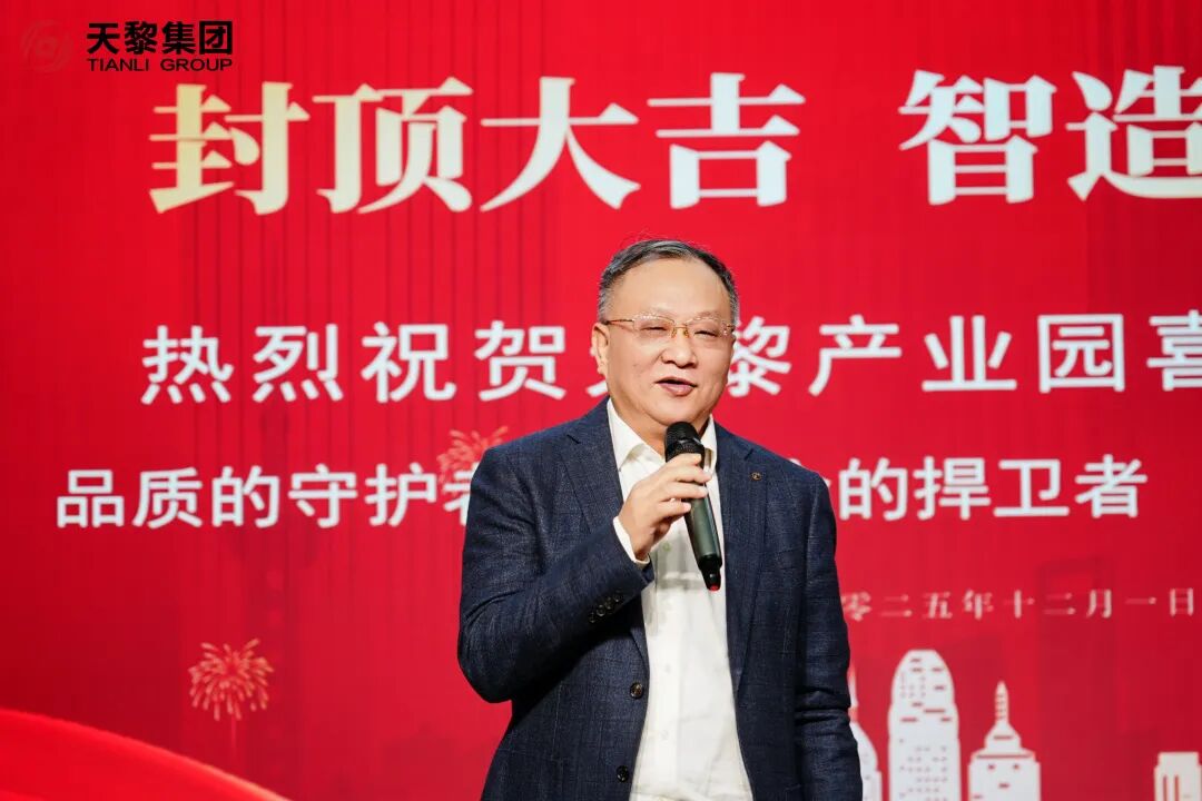 仪式上,天黎集团鲍董满怀感激之情,向所有关心、支持项目建设的各级领导、合作伙伴,以及日夜奋战在一线的全体建设者致以最诚挚的感谢。他感慨道:“从最初的一纸蓝图到如今楼宇屹立,每一步都凝聚着大家的心血、汗水与智慧。今日封顶,是我们携手取得的阶段性胜利,更是迈向精细化运营与生态构建全新征程的起点。”随着鲍总高声宣布“天黎产业园喜封金顶”,现场掌声雷动,共同铭记这一具有重要意义的时刻。