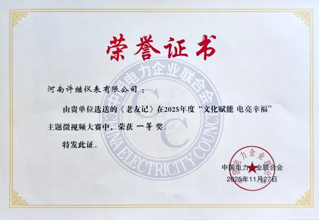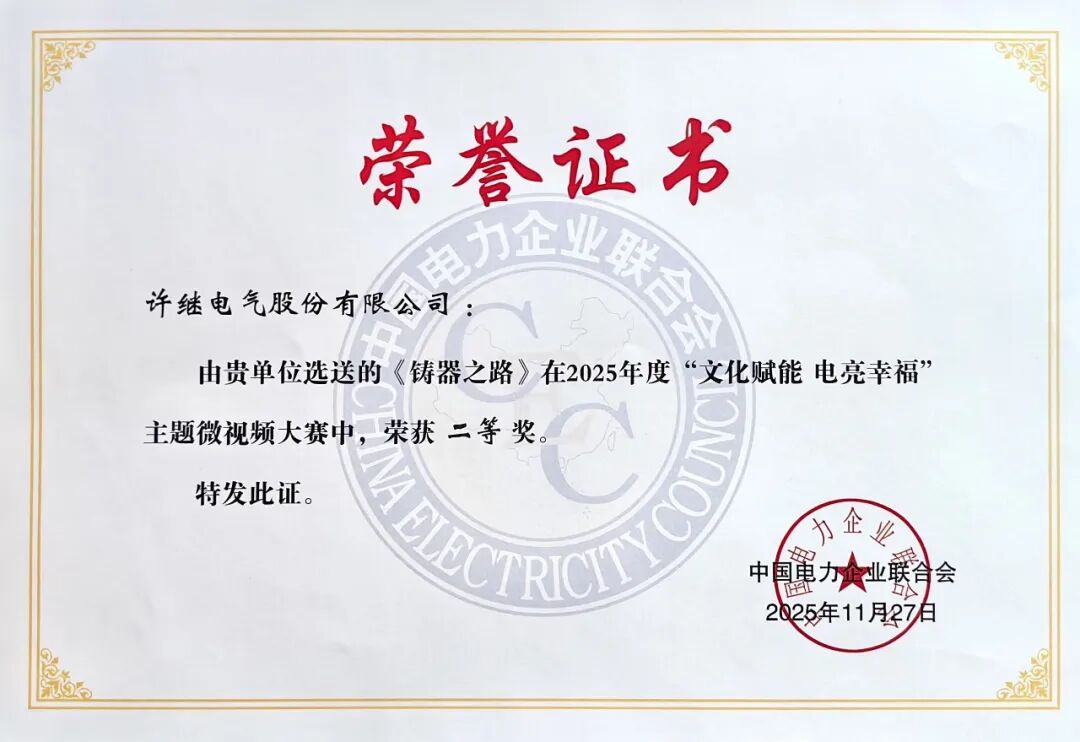11月27日,由中国电力企业联合会、电力文化艺术协会联合主办的“文化赋能 电亮幸福”主题微视频大赛在北京举行。许继电气选送的《老友记》荣获“短视频“项目一等奖,《铸器之路》荣获”短视频“项目二等奖。