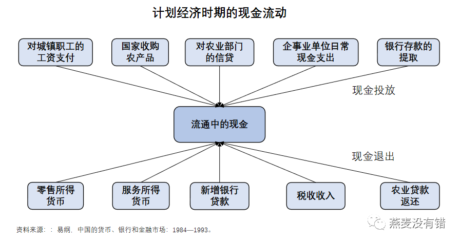 1984年以前的财政融资很好理解。我们在之前的文章中介绍过,1954-1978年的二十多年间,由于实行计划经济体制,国家实行年度基本建设投资计划和信贷计划。当时,财政部承担集中办理国家基本建设预算拨款和企业自筹资金拨付工作。而这期间不允许现金资金的流动,而均以银行存款形式划拨。以国营企业为主的生产建设单位筹集所需发展资金本身就多依靠财政拨款,对现金货币流通渠道的锁定更加剧了其对财政输血的依赖。
