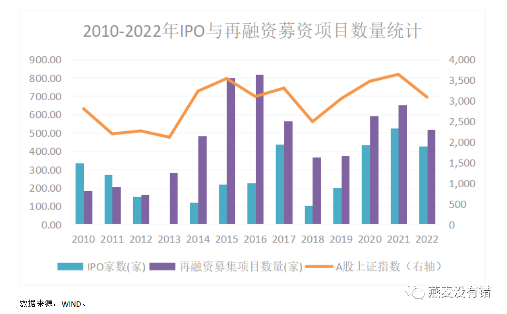 同时,图表中的数据也显示出,即使在IPO被严重束缚的年份中,再融资市场的表现也较为稳定,能够持续为资金提供发挥空间。