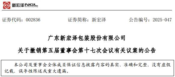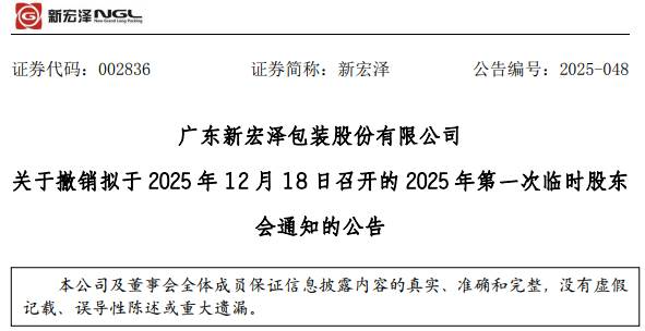 2025年12月3日消息,上市公司广东新宏泽包装股份有限公司(002836新宏泽)第五届董事会第十八次会议于2025年12月3日上午10:00以通讯表决的方式召开。
