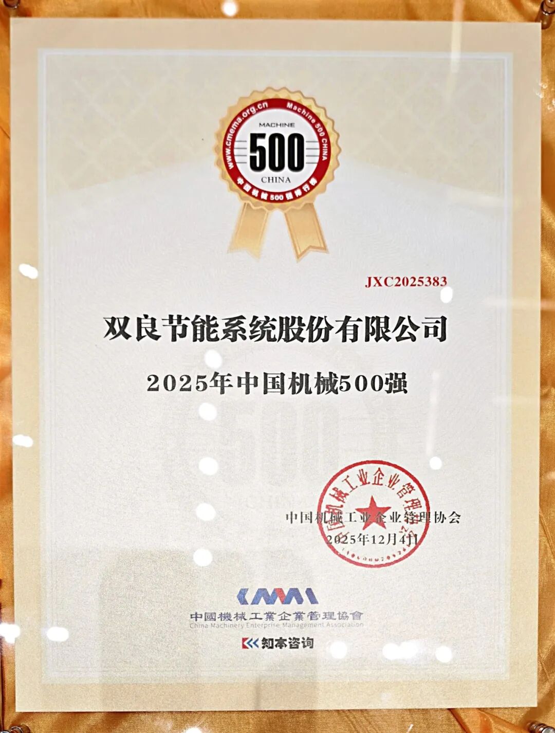 12月4日,以“新质驱动 智领未来——锻造中国机械行业高质量发展新引擎”为主题的“2025年中国机械500强研究报告发布会暨中机企协业务总部启用仪式”在江苏省苏州市隆重召开,汇聚国家相关部委以及地方政府领导、协会领导等,共同探讨机械工业转型升级路径。凭借在节能装备领域的综合实力与行业影响力,双良节能系统股份有限公司成功入围2025年“中国机械500强”,再次彰显其作为中国绿色制造标杆企业的行业地位。