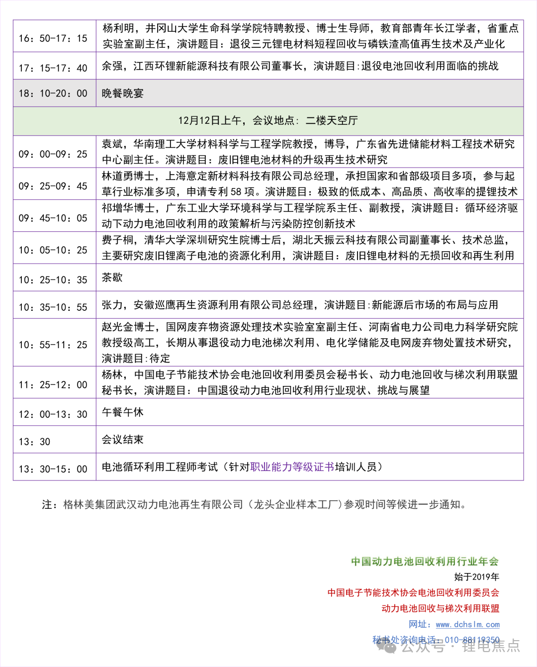 【最新议程】12月11日2025中国动力电池回收利用行业年会