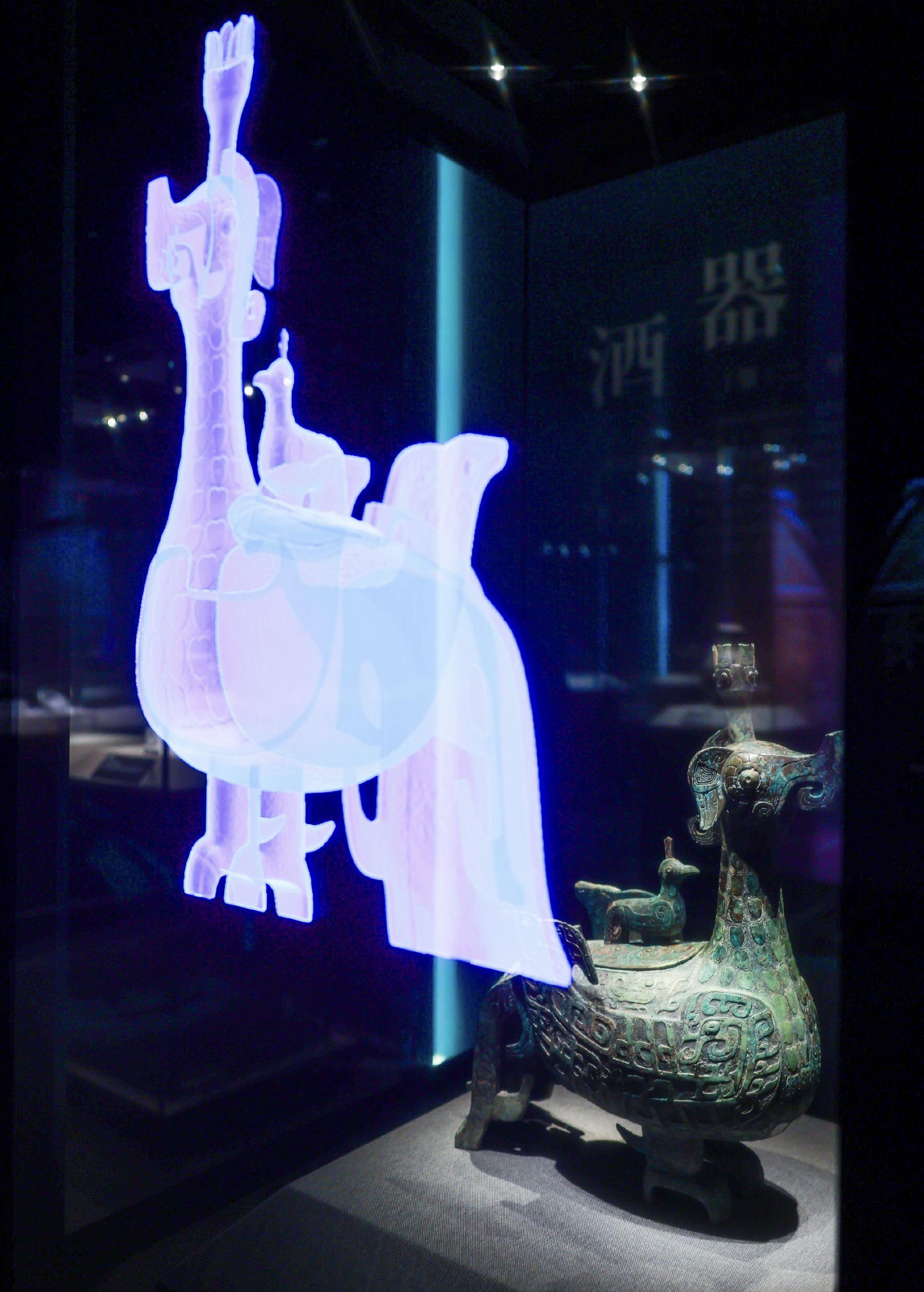 展厅深处,沉浸式的三折屏幕正循环播放圆明园海晏堂大水法复原影像,吸引不少参观者驻足观看。当画面里十二生肖喷泉依次喷水时,大家发出阵阵惊叹。据了解,此次展览打破了传统展陈模式,运用科技赋能,让文物重焕生机。通过AI技术复原的战国社会生活场景、依托红外感应装置打造的“步步生莲”互动体验区等,让传统文化变得可感可触。