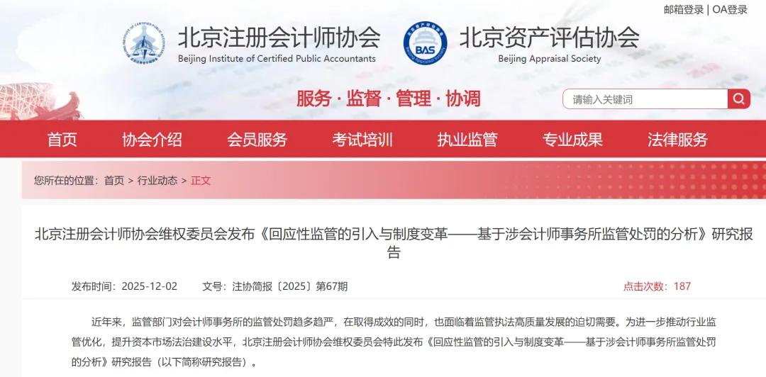 北京注册会计师协会维权委员会发布《回应性监管的引入与制度变革——基于涉会计师事务所监管处罚的分析》研究报告