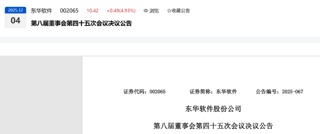 东华软件股份公司(以下简称 “公司”)第八届董事会第四十五次会议于 2025 年 12 月 3 日以电子邮件的方式发出会议通知和会议议案,会议于 2025 年 12 月 3 日以通讯表决的方式召开。
