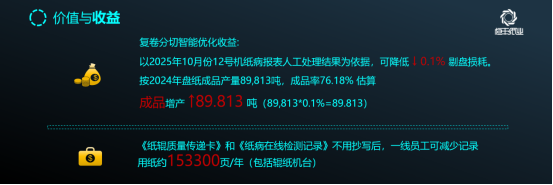 (三)管理与合规双升级:实现生产数据电子化存储与快速追溯,替代经验化分切方案,推动生产管理从“人工依赖”向“数据驱动” 转型,深化企业数字化运营能力。