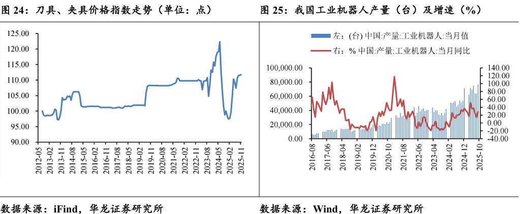 刀具价格上涨。2025年11月,刀具价格指数为111.68点,较10月增 加0.15点。我们认为,主要与①核心原材料价格上行带来的成本压力传导; ②产业升级驱动的下游需求增长相关。