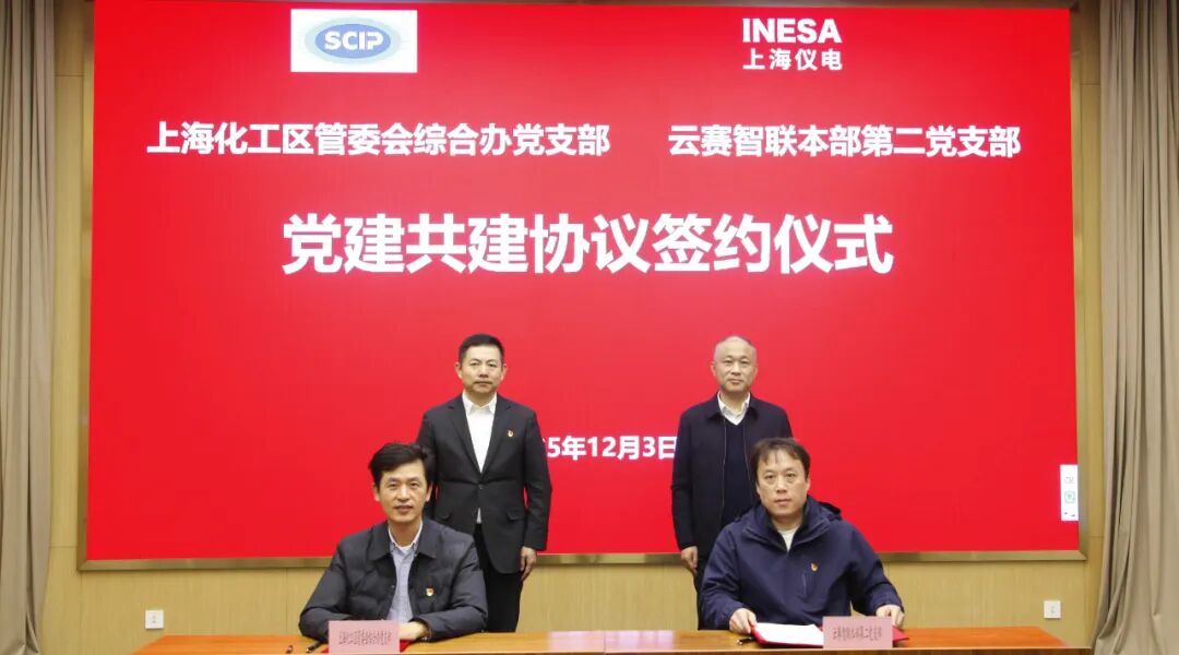 最后,双方共同见证云赛智联本部第二党支部与上海化工区管委会综合办党支部签订党建共建协议。