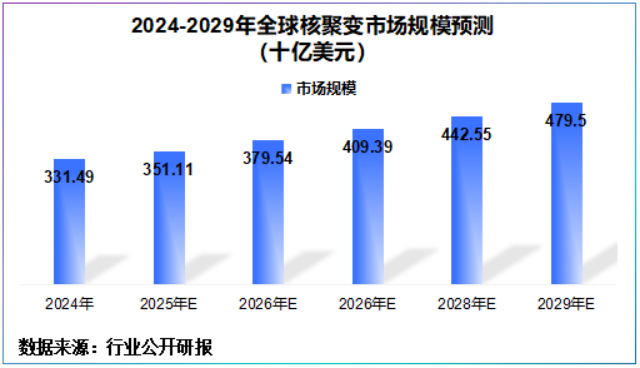AI用电、绿电影响下,核聚变成了2025年全球科技和能源领域的焦点,行业预计2025年全球核聚变市场规模约3511亿元,2029年将达4795亿元。