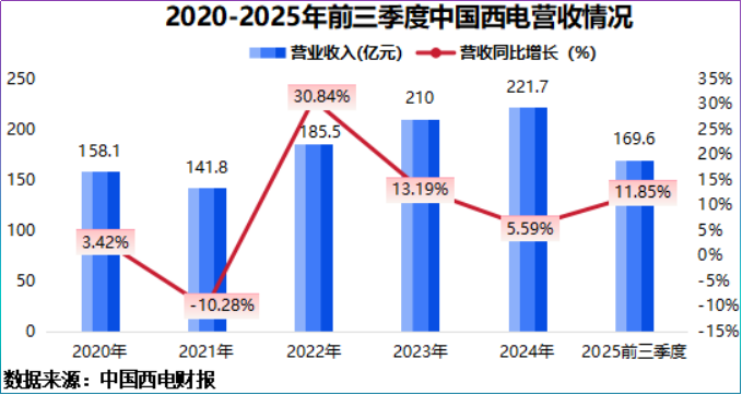 单看营收,2025年前三季度,中国西电实现营收170亿元,同比增长11.54%,过去五年公司年均营收增速为8.65%,不算优秀。