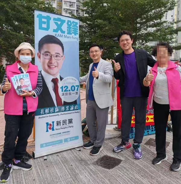 甘文锋:可能是资源不足。民建联、工联会成立已久,属于大政党,全港有很多他们的议员;庄豪锋背靠田北辰,梁明坚是原居民有乡事支持,也都有很多资源。相比之下,我们新民党是一个小党,资源相对较少。你如果有到我们的街站现场,会发现我的宣传物料是最少的,连旗都是最少的。