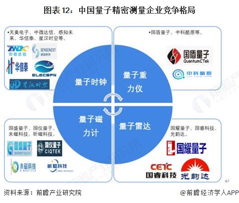 目前,中国量子精密测量市场仍处于亟待发展的阶段,众多企业参与量子精密测量研发、生产及使用的环节当中,竞争日益激烈。量子精密测量行业细分设备领域主要有量子时钟、量子重力仪、量子磁力计、量子雷达等等。其中,量子时钟参与竞争的企业主要有:天奥电子、中微达信、感知未来、华信泰、星汉时空等;量子重力仪参与竞争的企业主要有:国盾量子、中科酷原等;量子磁力计参与竞争的企业主要有:国盛量子、国仪量子、未磁科技、昕磁科技等;量子雷达参与竞争的企业主要有:国耀量子、国睿科技、光韵达等。