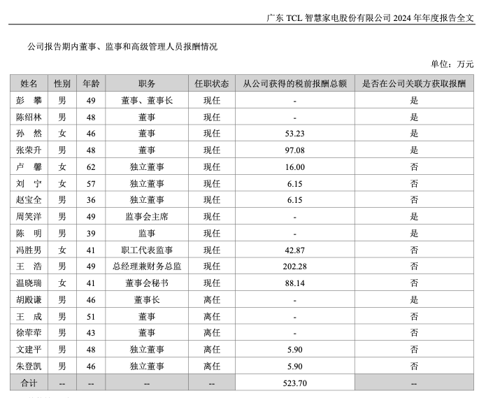 2024年年报显示,公司董事、监事和高级管理人员2024年报酬总额523.7万元。董事、董事长彭攀2024年从公司获得的税前报酬总额为0,在公司关联方获取报酬。总经理兼财务总监王浩2024年从公司获得的税前报酬总额为202.28万元,未在公司关联方获取报酬。董事会秘书温晓瑞2024年从公司获得的税前报酬总额为88.14万元,未在公司关联方获取报酬。