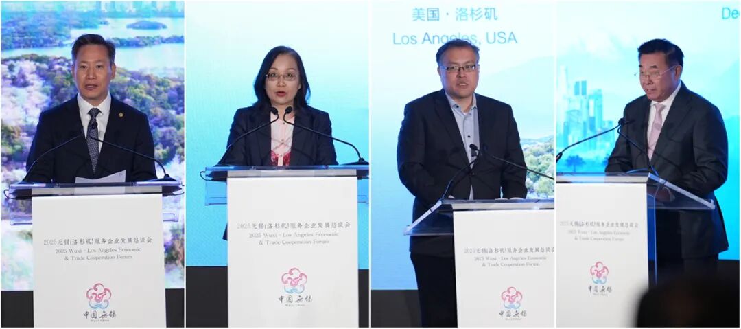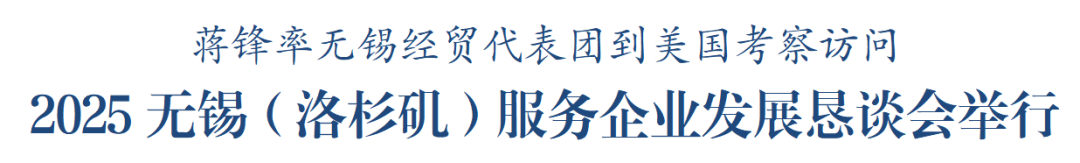 在2025无锡(洛杉矶)服务企业发展恳谈会上,蒋锋和中国驻洛杉矶总领事馆商务参赞彭敬、美中贸易全国委员会高级副会长范诺亚、加州众议院教育委员会主席方树强、美国华人华侨联合总会会长蔡成华分别现场或视频致辞,洛杉矶市长办公室国际贸易与投资部主任克里斯汀·彼得斯出席活动。美国纽约人寿保险公司、世邦魏理仕、美国PM&J,以及国联集团、瀚海控股集团、日联科技集团作交流发言,无锡高新区作投资环境推介。我市为美国华人华侨联合总会、世邦魏理仕、瀚海控股集团颁发中国无锡“全球招商伙伴”聘书。无锡友好城市圣贝纳迪诺郡,洛杉矶郡监督委员会以及美国中资企业协会和部分在美中国省、市商协会代表等参加活动。