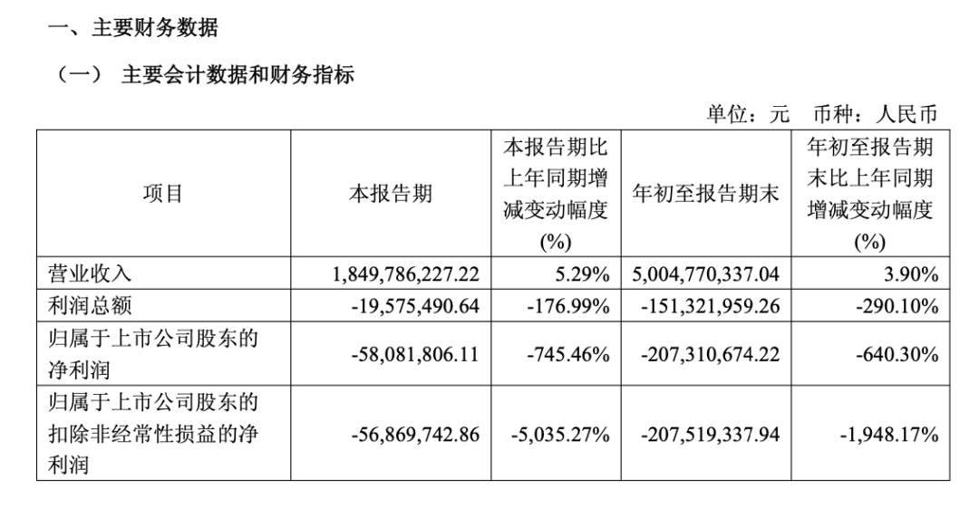 六国化工(600470)发布2025年三季度报,今年前三季度,公司实现营收50.05亿元,同比增长3.90%;归属于上市公司股东的净利润-2.07亿元,由盈转亏。其中,第三季度营收为18.5亿元,同比增长5.29%;归属于上市公司股东的净利润-5808.18万元,由盈转亏。