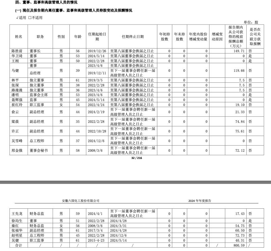 2024年年报显示,公司董事、监事和高级管理人员2024年报酬总额800.59万元。董事长陈胜前2024年从公司获得的税前报酬总额为149.71万元。董事、总经理马健 2024年从公司获得的税前报酬总额为119.66 万元,董事会秘书邢金俄2024年从公司获得的税前报酬总额为72.12万元,以上人员均未在公司关联方获取报酬。