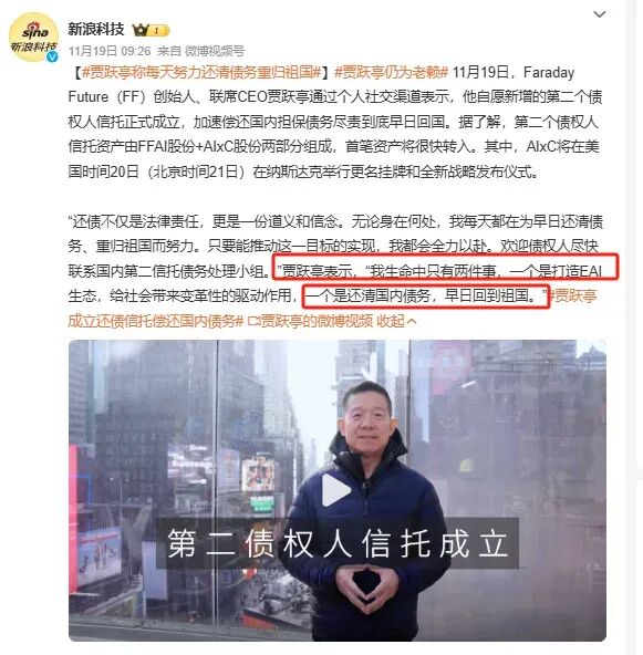 除了造车目标,贾跃亭的“回国梦”也一直挂在嘴边。