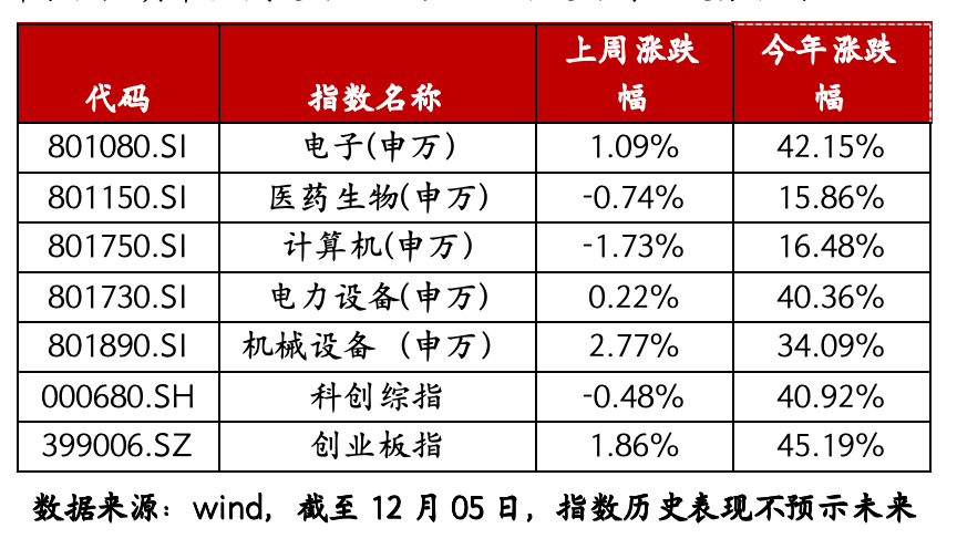 当前科创综指、科创100指数、创业板指数总体处于产业周期向好趋势,中长期可关注相关产业趋势。短期12月份美联储降息概率反弹,监管允许适度拓宽券商资本空间与杠杆上限,叠加12月份政治局会议、中央经济工作会议的政策预期,市场有望维持向好态势。