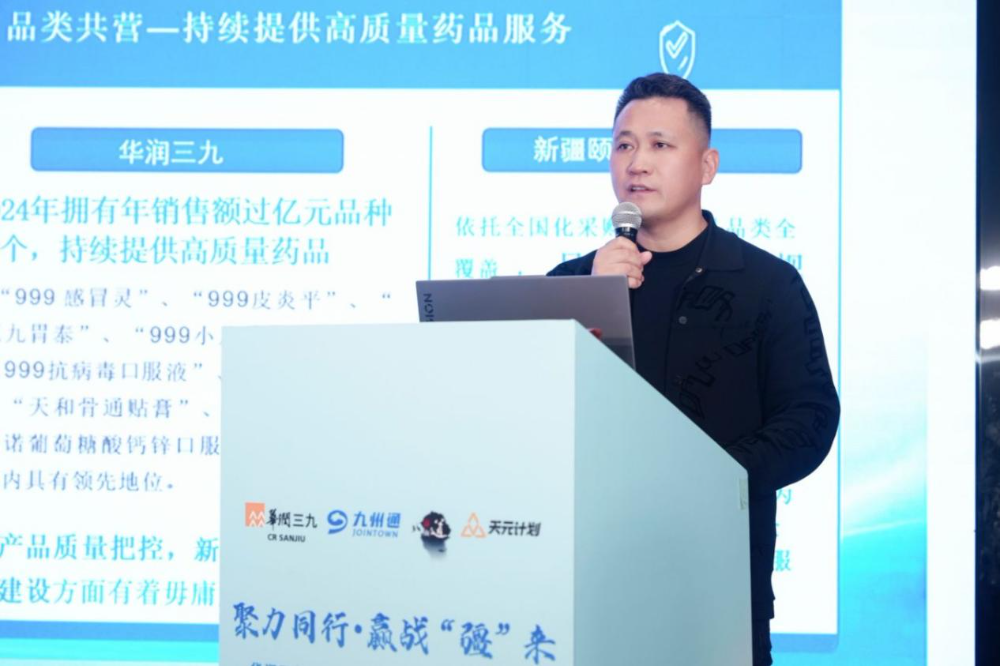 峰会伊始,华润三九陕新甘青宁区域经理何欣实发表开场致辞。他从行业发展宏观视角,深刻解读了本次峰会“聚力同行、赢战‘疆’来”主题的核心内涵。在行业洗牌与消费升级并行的当下,何欣实强调,依托华润三九的品牌产品优势、新疆九州通的渠道服务能力及连锁终端的本地化运营经验,三方需形成资源聚合效应,通过战略共融、数据共通、营销共振、价值共创,在模式创新与服务升级中实现区域市场领航,为新疆OTC市场高质量发展注入新动能。