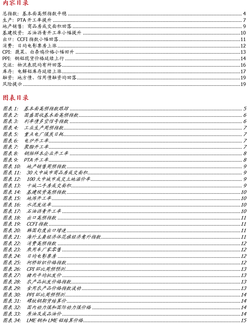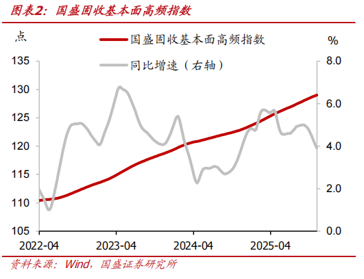 根据我们在2023年9月5日发布的报告《基本面高频数据——债市投资占先手的有效工具》,我们基于统计体系构建了覆盖总体、生产、需求、物价、融资等全方位的高频数据体系,分析了高频和对应统计指标的相关性,并在此基础上构建了国盛固收基本面高频指数及分项。