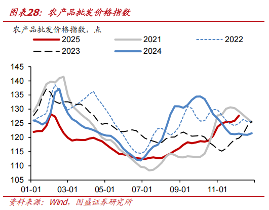 CPI方面,最新一期猪肉平均批发价为17.7元/公斤,前值为17.9元/公斤;最新一期28种重点监测蔬菜平均批发价为5.9元/公斤,前值为5.8元/公斤;最新一期7种重点监测水果平均批发价为7.3元/公斤,前值为7.3元/公斤;最新一期白条鸡平均批发价为17.8元/公斤,前值为17.5元/公斤。
