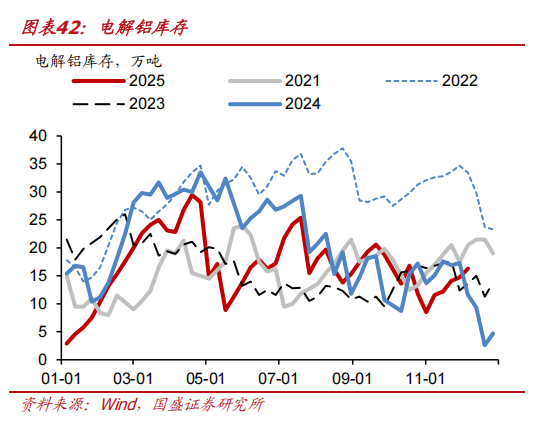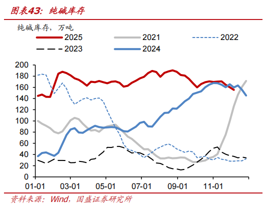 当周电解铝库存为16.3万吨,前值为14.7万吨;纯碱库存为155.4万吨,前值为160.2万吨。