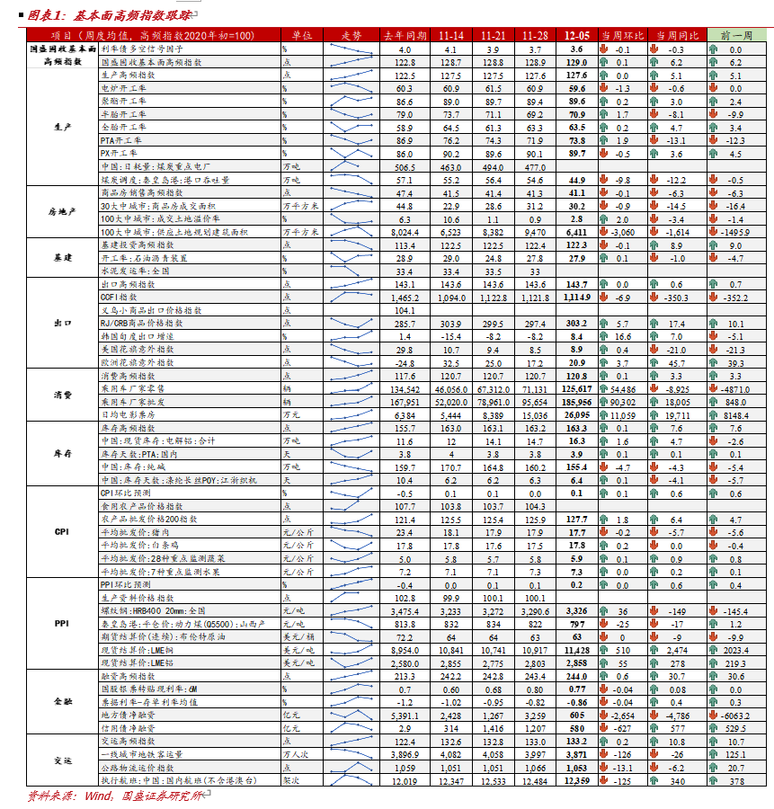本次基本面高频数据更新时间为2025年12月1日-2025年12月7日: