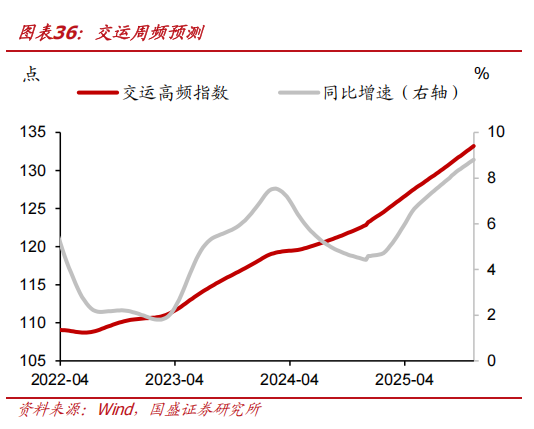 交运高频指数为133.2,前值为133.0,当周同比增加10.8点(前值为增加10.7点),同比增幅扩大。