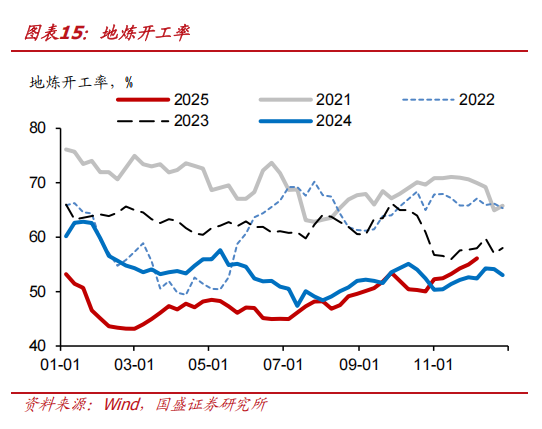 生产方面,工业生产高频指数为127.6,前值为127.6,当周同比增加5.1点(前值为增加5.1点),同比增幅不变。